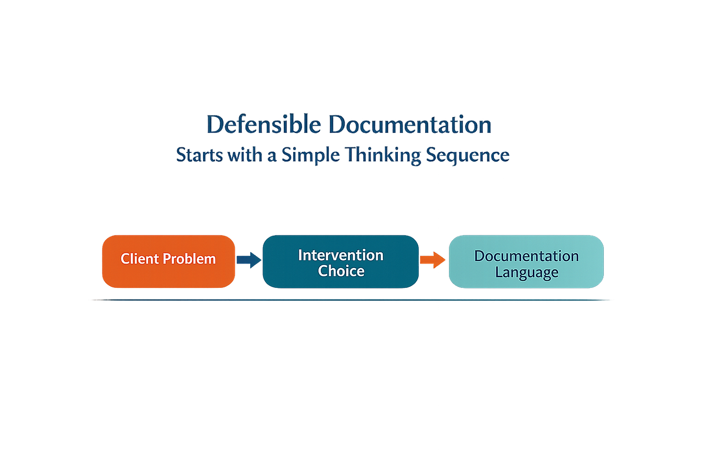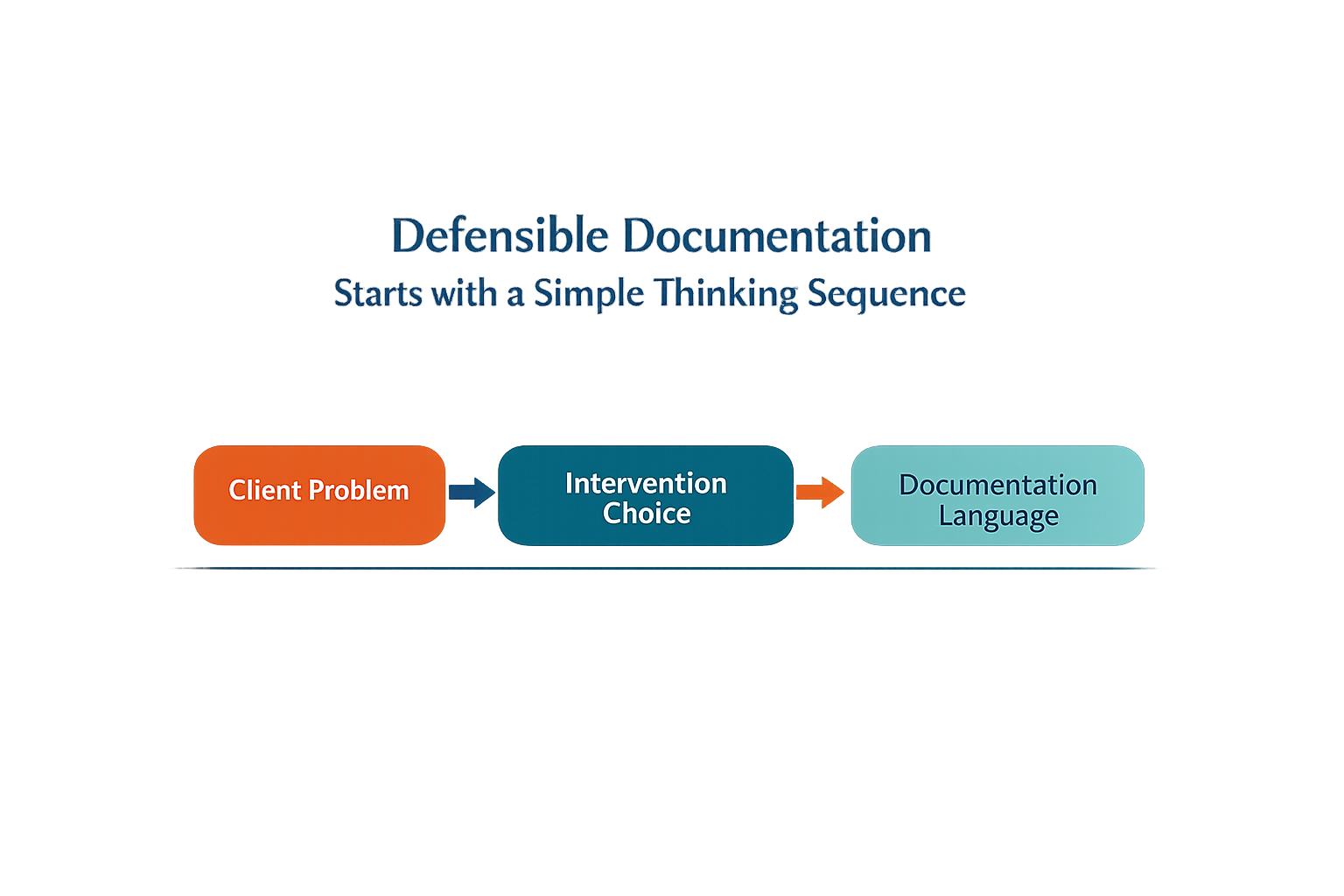 When these three pieces align, your note tells a coherent clinical story: what the client needs, why you chose the intervention, and how it supports functional outcomes. When they don’t align, documentation becomes task-based (“what happened”) instead of skilled (“why it mattered”).