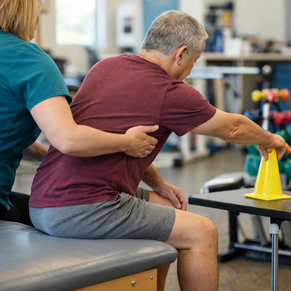 Improved unsupported sitting endurance directly supports grooming and upper body dressing performed in sitting. When the trunk can remain upright without collapse, the arms can move more freely and efficiently. The patient is less likely to lean heavily onto surfaces, pause repeatedly to reset posture, or fatigue before the task is complete. Over time, improved sitting endurance translates into smoother, more sustainable ADL performance.